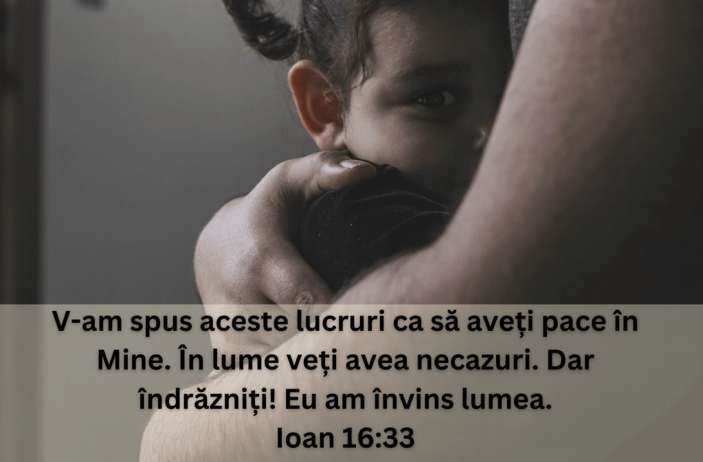 V-am spus aceste lucruri ca să aveți pace în Mine. În lume veți avea necazuri. Dar îndrăzniți! Eu am învins lumea.