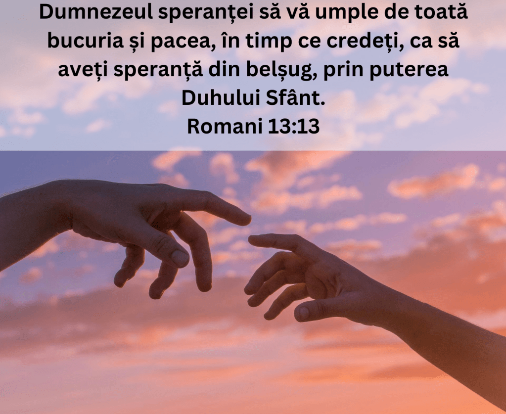 Dumnezeul speranței să vă umple de toată bucuria și pacea, în timp ce credeți, ca să aveți speranță din belșug, prin puterea Duhului Sfânt.